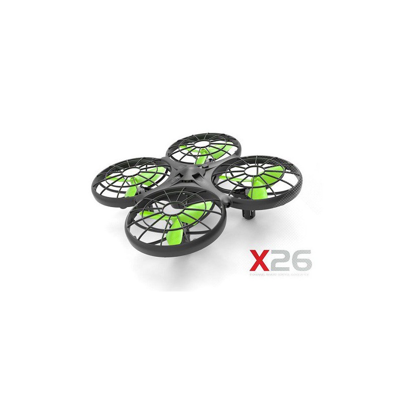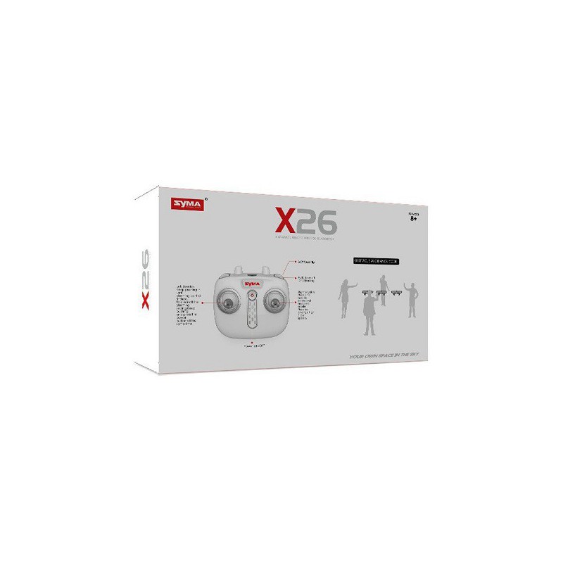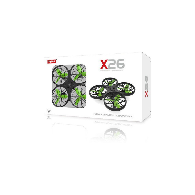 Kvadrokoptéra SYMA X26 s gyroskopem a barometrem, funkcí auto vzlétnutí/přistání/ vznášení na místě. Opatřená senzory proti nárazu do překážek.