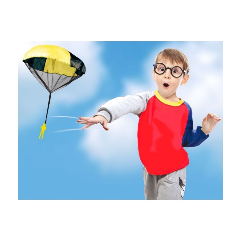 PARACHUTE je hračka vhodná do vnitřních i venkovních prostorů. Na výběr je několik barevných variant. Průměr padáku je 46 cm.
